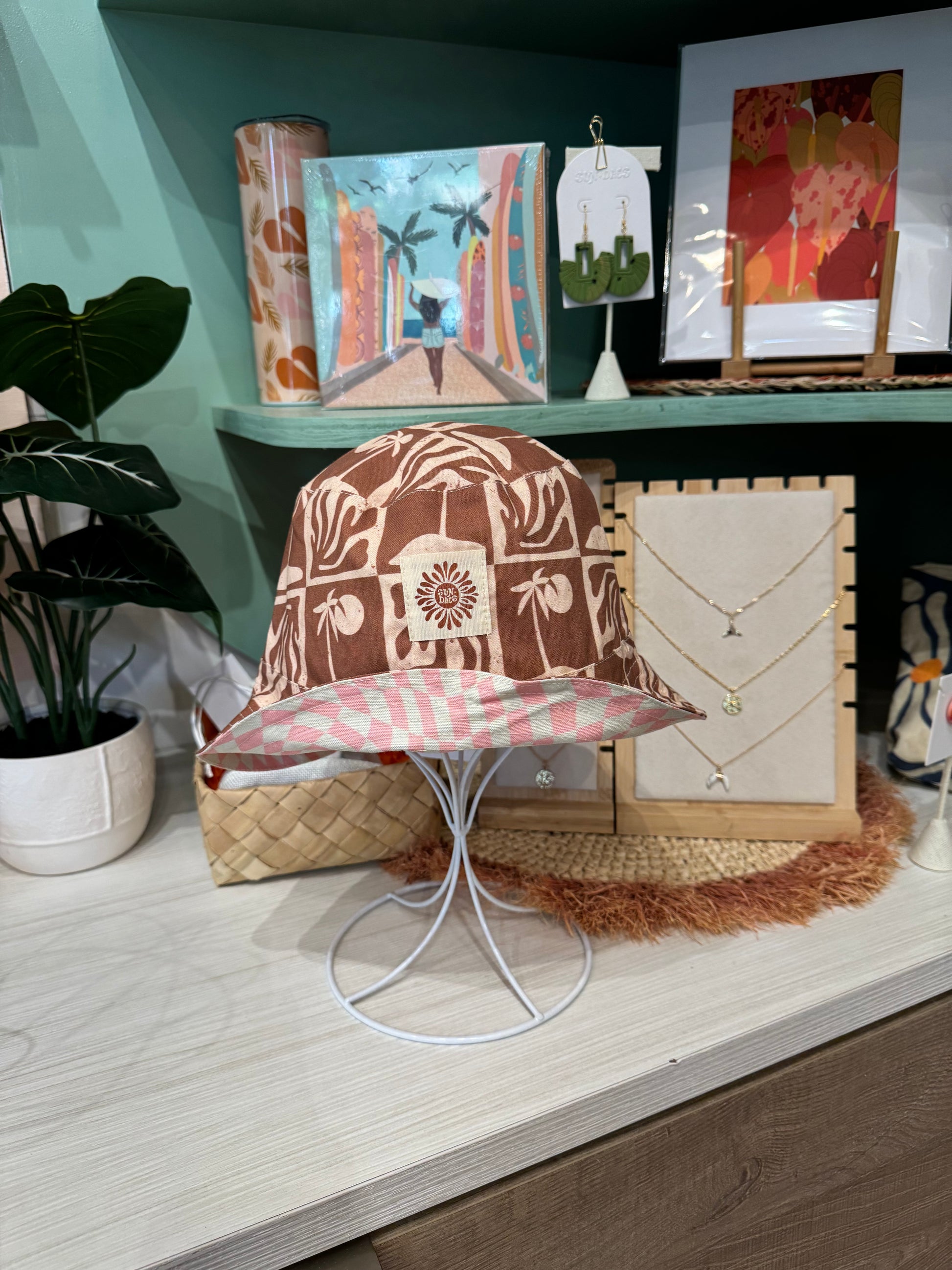 Brown patchwork bucket hat