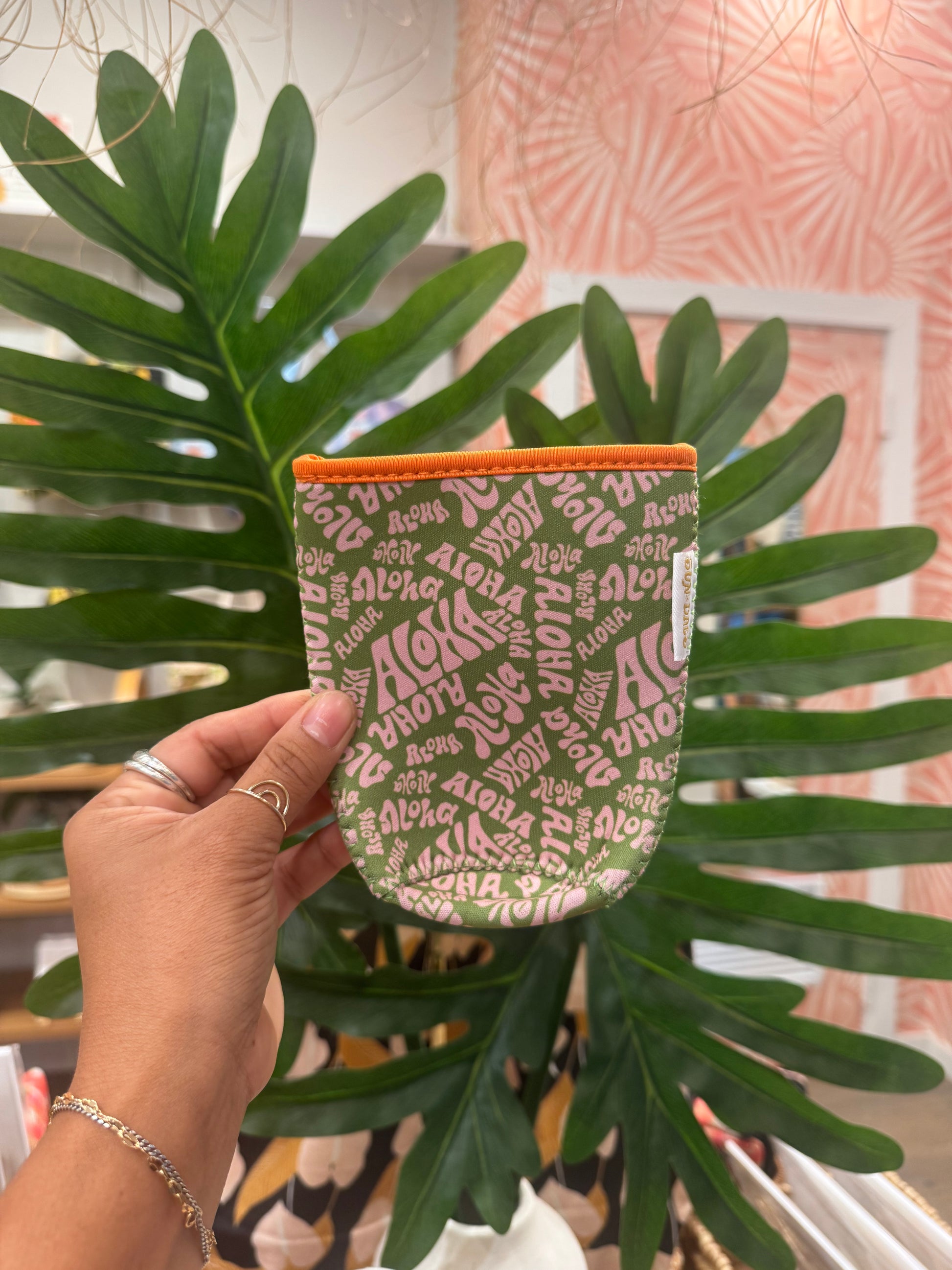 Green Aloha coffee sleeve LRG