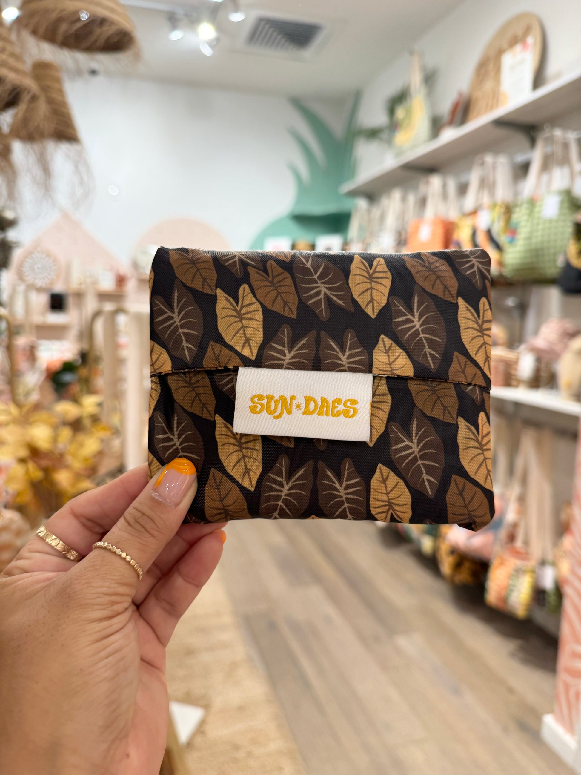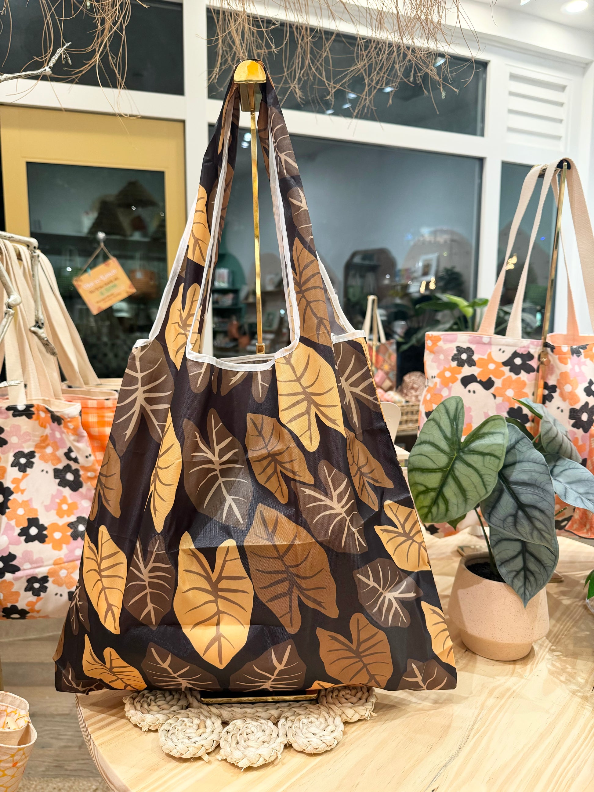 Overall bag size 25” L x 17” W. Folds up to 4.5”x5.5” pouch.
