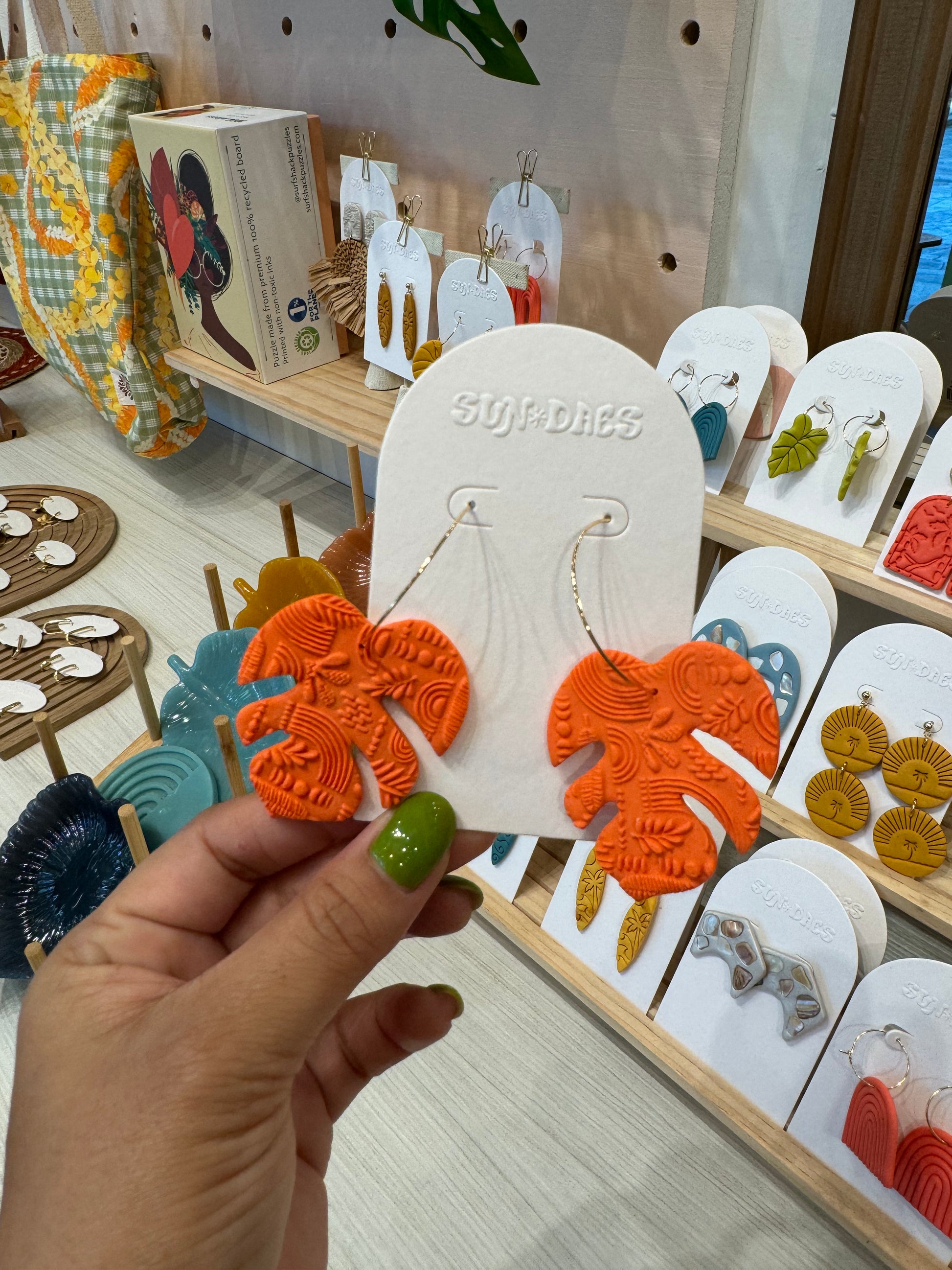 Handmade clay earrings. Because these are made out of polymer clay it makes them very lightweight and easy on the ears!