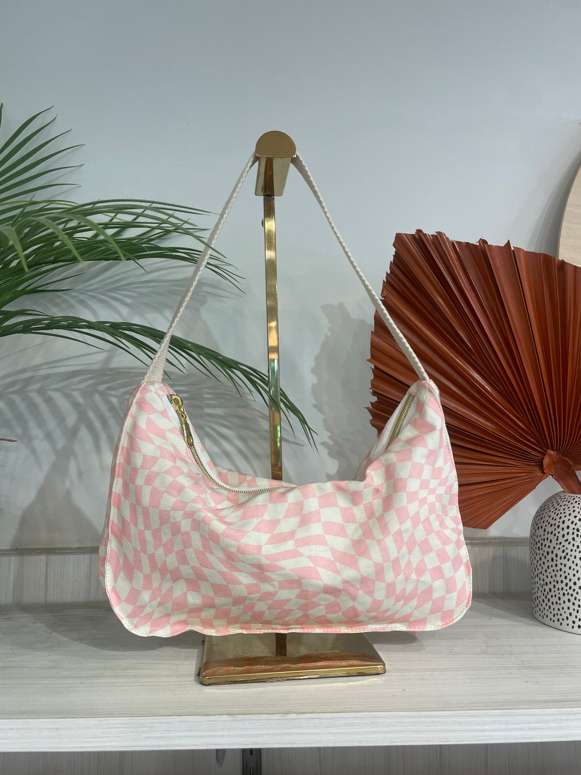 Pink checkered Ry-n shoulder bag