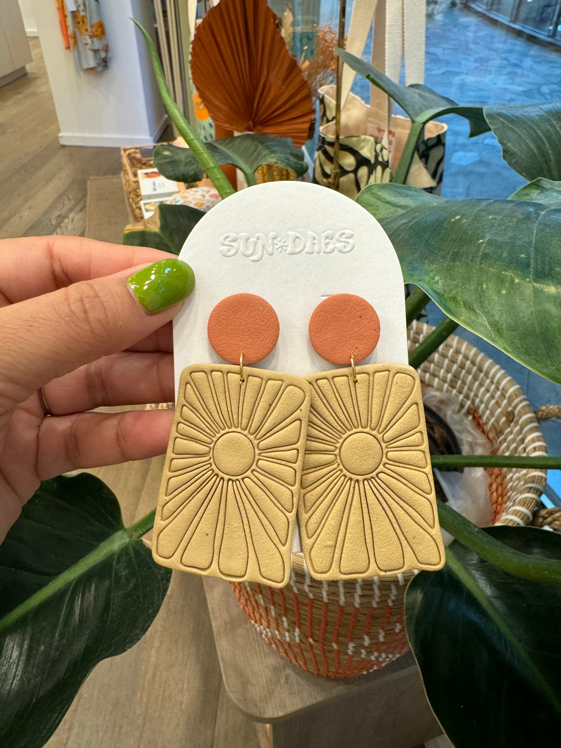 Handmade clay earrings. Because they are made out of polymer clay, it makes them very lightweight and easy on the ears!